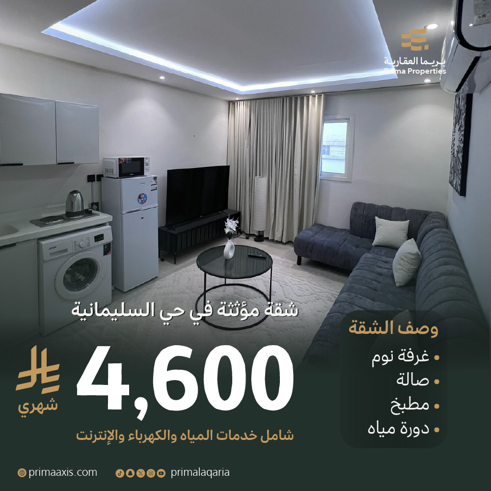 صور الوحدة | غرفة وصالة – 4600 ريال - شقة في عمارة للإيجار - حي السليمانية | بريما العقارية